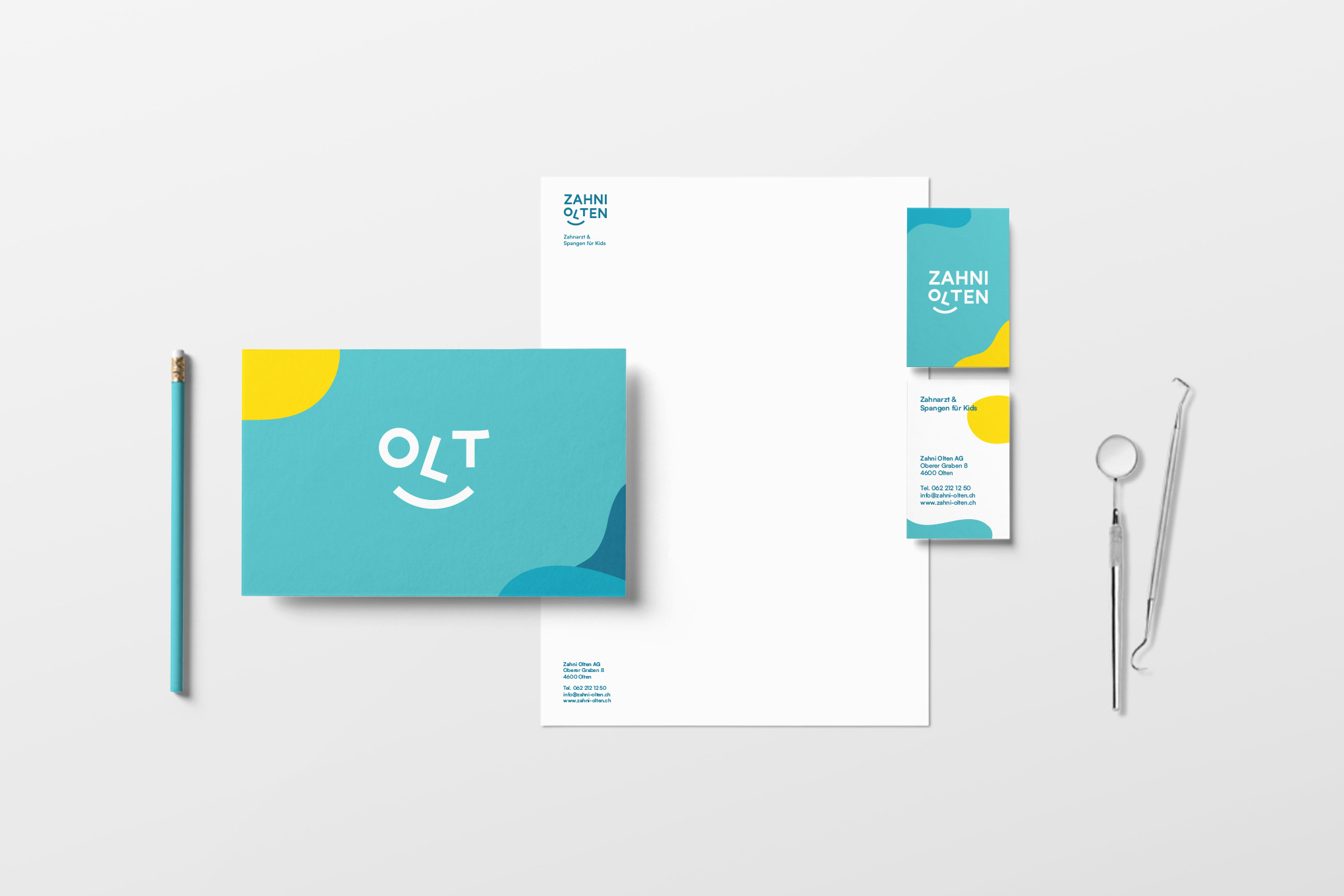 Das Logo ist in diversen Formaten verfügbar. Es gibt eine Version mit und ohne Zusatz «Zahnarzt & Spangen für Kids». Für spezielle Anwendungen kann das Signet verwendet werden.